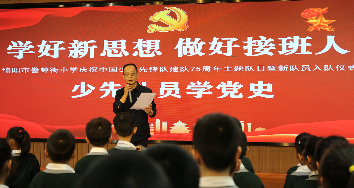 為了增強(qiáng)少先隊(duì)員對(duì)少先隊(duì)組織的榮譽(yù)感和歸屬感,10月12日下午,綿陽(yáng)市警鐘街小學(xué)舉行了“紅領(lǐng)巾愛祖國(guó),爭(zhēng)做好隊(duì)員”為主題的慶祝中國(guó)少年先鋒隊(duì)建隊(duì)75周年主題隊(duì)日暨新隊(duì)員入隊(duì)儀式活動(dòng)。