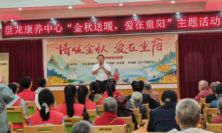 10月11日,共青團三臺縣委聯(lián)合三臺中學團委與盤龍康養(yǎng)中心共同舉辦了以“金秋送暖 愛在重陽”為主題的2024年重陽節(jié)慶?;顒?。