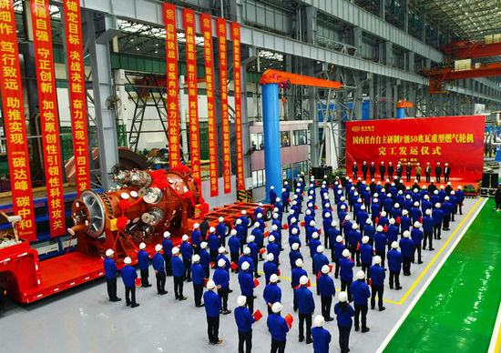 2022年11月25日,在四川省德陽市,東方電氣集團研制出的國內(nèi)首臺自主研制F級50MW重型燃氣輪機(G50)完工發(fā)運。新華社發(fā)(劉崗 攝)