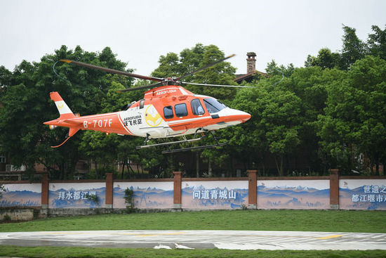 2024年6月20日,一架阿古斯塔AW109型載人直升機經(jīng)過兩次成都市域內(nèi)的往返飛行,完成成都市城市低空載人出行驗證飛行任務,探索成都低空經(jīng)濟的應用場景。這是在四川省成都市都江堰市青城山起降點拍攝的參與驗證飛行的載人直升機。新華社記者 胥冰潔 攝