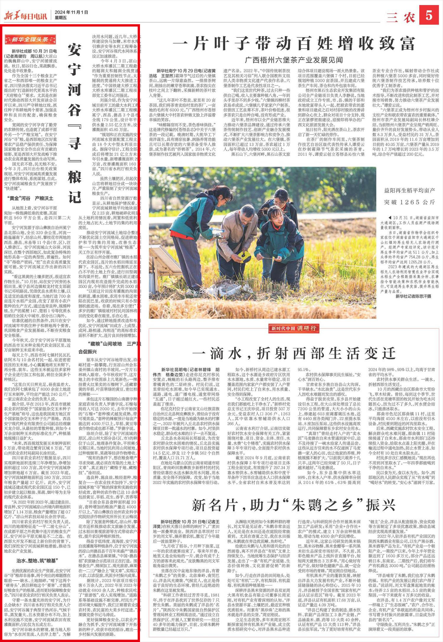 四川省農(nóng)業(yè)農(nóng)村廳數(shù)據(jù)顯示,四川實(shí)現(xiàn)耕地面積連續(xù)三年凈增加,凈增加面積超過100萬畝,其中安寧河流域凈增加耕地超6萬畝。截至2023年底,安寧河流域耕地面積近580萬畝,2023年糧食產(chǎn)量超37億斤。此外,安寧河流域還建成現(xiàn)代農(nóng)業(yè)園區(qū)近150個(gè),已初步建立起以糧油、果蔬、煙葉等為主導(dǎo)的現(xiàn)代農(nóng)業(yè)體系。