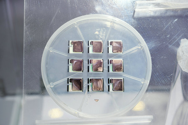 這是11月6日在第十二屆中國(綿陽)科技城國際科技博覽會(huì)上拍攝的固態(tài)薄膜電池。