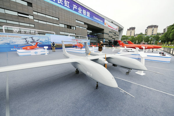 這是11月6日在第十二屆中國(綿陽)科技城國際科技博覽會(huì)上拍攝的固定翼無人機(jī)。