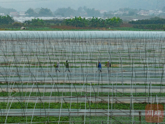 宜賓市南溪區(qū)長江村蔬菜種植大棚。