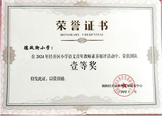 綿陽新聞網(wǎng)訊 11月5日,“2024年經(jīng)開區(qū)小學語文青年教師素養(yǎng)展評暨新教材培訓”活動在經(jīng)開區(qū)實驗小學舉行。在本次活動中,綿陽市德政街小學榮獲團隊“壹等獎”。