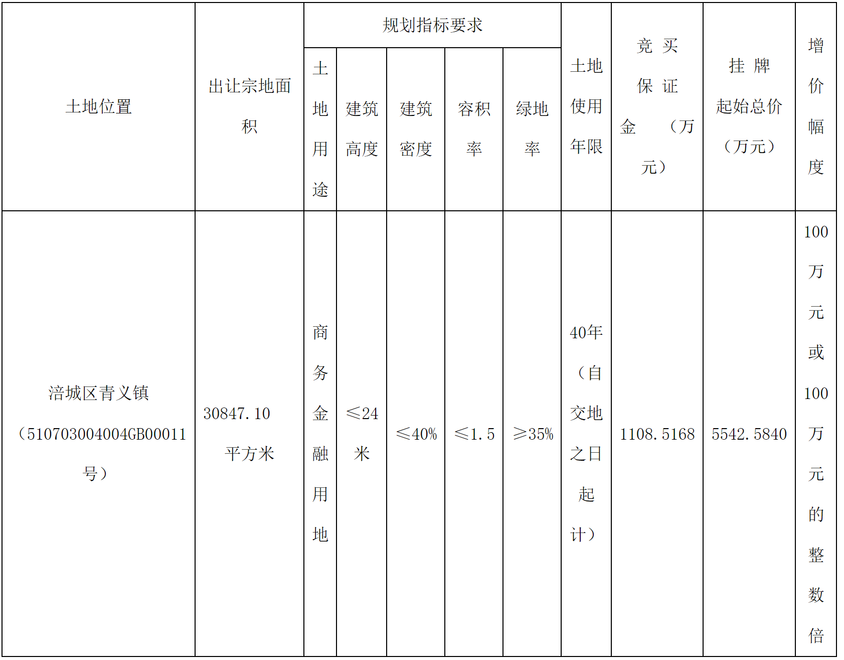 六、本次國(guó)有建設(shè)用地使用權(quán)掛牌地點(diǎn)為綿陽(yáng)市公共資源交易服務(wù)中心。掛牌競(jìng)價(jià)時(shí)間:2024年12月3日9:00至2024年12月13日14:00。