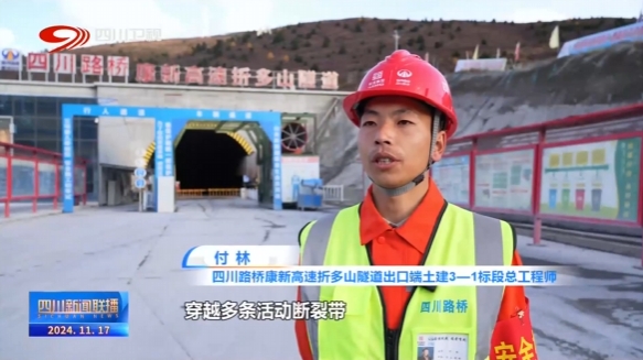 四川路橋康新高速折多山隧道出口端土建3—1標段總工程師 付林:隧道地質(zhì)條件極其復(fù)雜,穿越多條活動斷裂帶。建設(shè)條件極其困難。隧道的貫通將打破川藏線“入關(guān)”瓶頸,原先翻越折多山需要約1.5小時的車程縮短至8至10分鐘。