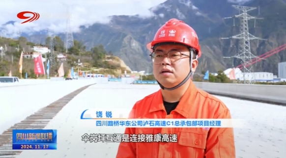 四川路橋華東公司瀘石高速C1總承包部項目經(jīng)理 饒銳:傘崗坪互通是連接雅康高速和瀘石高速的一個樞紐互通,整個項目施工難度相當大,目前,已達到90%的施工進度,預(yù)計在明年4月份左右建設(shè)完成。