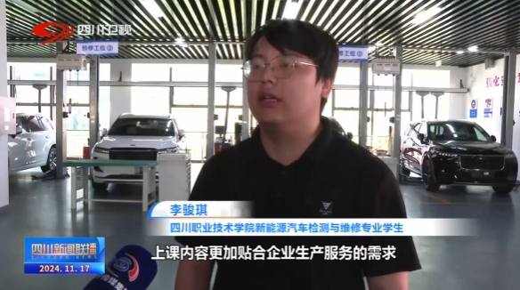 四川職業(yè)技術(shù)學(xué)院新能源汽車檢測與維修專業(yè)學(xué)生 李駿琪:上課內(nèi)容更加貼合企業(yè)生產(chǎn)服務(wù)需求,對于今后就業(yè)來說,也有很大的幫助。