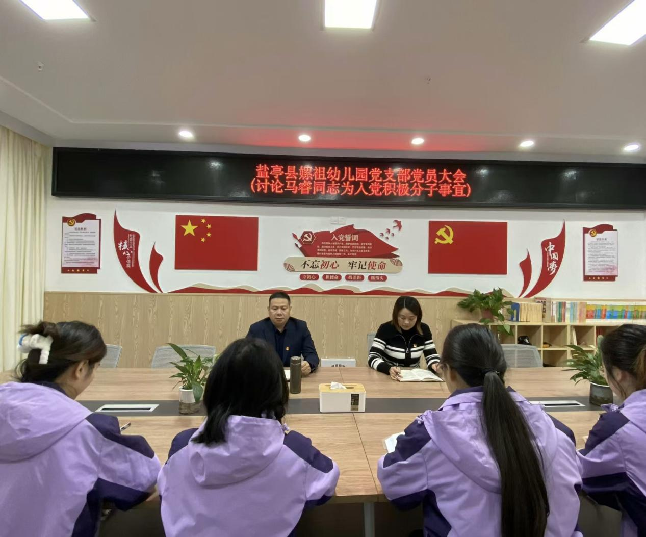11月12日,鹽亭縣嫘祖幼兒園黨支部在學(xué)校黨建室召開了2024年秋黨員會議,全體黨員和工會主席齊聚一堂,共同討論馬睿同志為入黨積極分子的相關(guān)事宜。