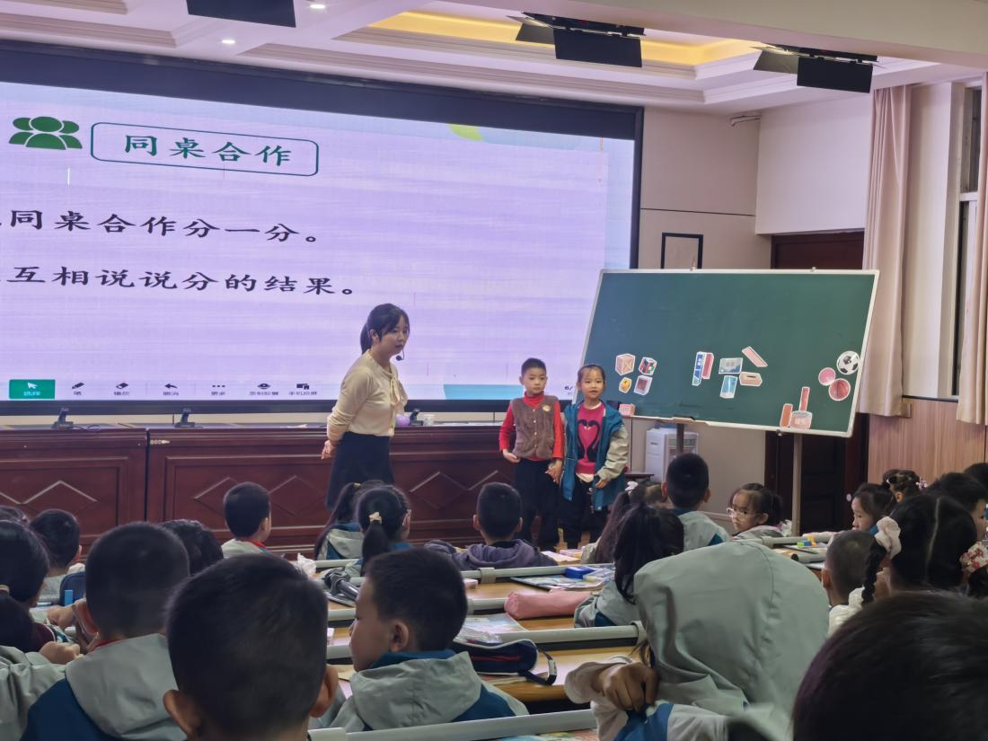 活動中,青年教師劉金蓉老師執(zhí)教了人教版一年級上冊第三單元《認識圖形1》一課,一校區(qū)全體數(shù)學教師和來自廣元的數(shù)學老師參加了聽評課活動。