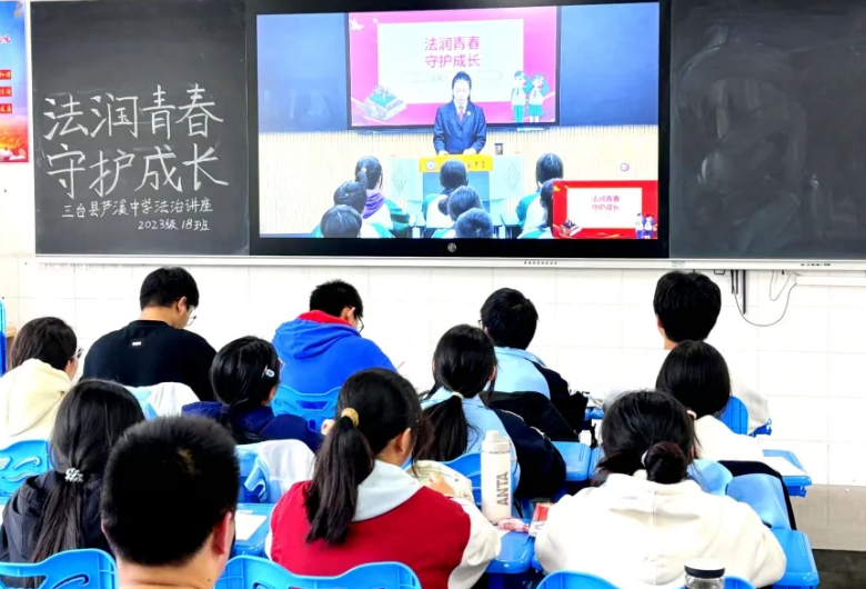 為了積極推進(jìn)法治校園、平安校園建設(shè),增強(qiáng)學(xué)生的法治觀念和安全意識(shí),提高學(xué)生的安全防范能力及學(xué)法、知法、懂法、守法的良好習(xí)慣,筑牢預(yù)防未成年人犯罪的法治防線,11月14日,三臺(tái)縣蘆溪中學(xué)法治副校長(zhǎng)三臺(tái)縣人民檢察院陳玥檢察長(zhǎng)、羅明川主任、張助理三人一同到蘆溪中學(xué),開展了以“法潤(rùn)青春 守護(hù)成長(zhǎng)”為主題的2024年秋法治講座。
