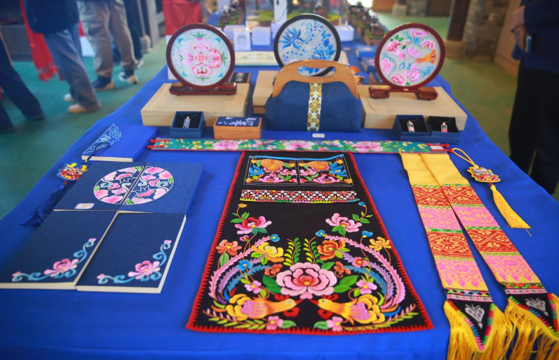 綿陽市北川羌族自治縣曲山鎮(zhèn)石椅村羌繡產(chǎn)品。新華網(wǎng)發(fā)(精神文明報(bào) 袁矛 攝)