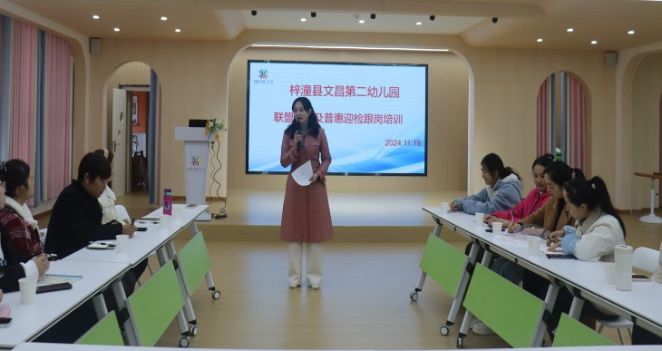 為了助推全縣學(xué)前教育普及普惠迎檢工作,搭建園所間相互學(xué)習(xí)、相互促進(jìn)的交流平臺(tái),11月19日上午,梓潼縣文昌二幼作為牽頭園,特邀許州、仙峰、馬鳴、雙板、演武五所小學(xué)附屬幼兒園10余人來園,開展了以“普及普惠同發(fā)展 幫扶培訓(xùn)助提升”為主題的2024年秋觀摩交流活動(dòng)。