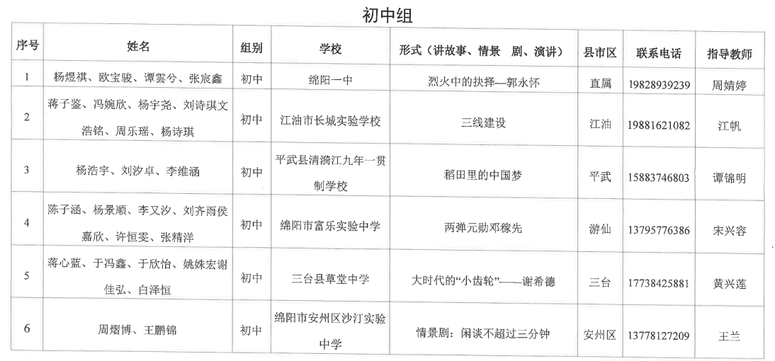 綿陽(yáng)市中小學(xué)、中職學(xué)生