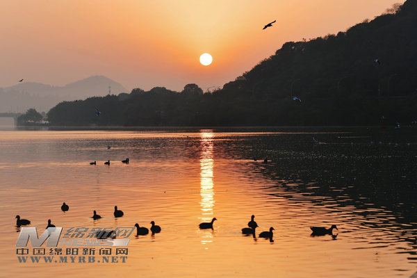 紅日冉冉升起,溫暖的陽(yáng)光照射在三江湖國(guó)家濕地公園的湖面上,千只紅嘴鷗起舞弄影,追逐嬉戲。遠(yuǎn)方,龍門山脈巍峨高聳的山脊宛如一條巨龍,在薄霧中若隱若現(xiàn),神秘又壯觀。到了傍晚時(shí)分,建筑、湖面、水鳥、行人……在落日余暉中呈現(xiàn)出一種別樣的美。
