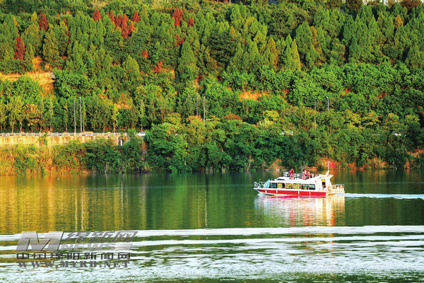 游人乘坐游船欣賞三江湖兩岸風(fēng)光