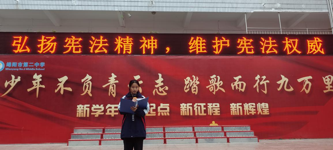 12月4日是全國憲法日。為了學(xué)習(xí)宣傳憲法,積極營造學(xué)憲法、講憲法的良好氛圍,不斷增強廣大師生的法治意識、法治觀念,推動依法治校進程,讓法治思想更加深入人心,12月2日,綿陽市第二中學(xué)利用朝會時間組織開展了以“弘揚憲法精神,維護憲法權(quán)威”為主題的2024年憲法誦讀活動,全體師生積極參與,營造出濃厚的尊法、學(xué)法氛圍。