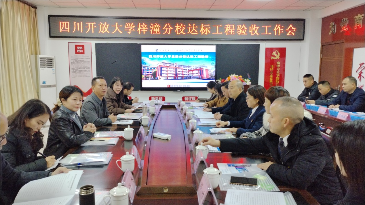 12月5日,四川開放大學(xué)“縣級(jí)分校達(dá)標(biāo)工程”驗(yàn)收組赴綿陽開放大學(xué)梓潼分校開展“縣級(jí)分校達(dá)標(biāo)工程”驗(yàn)收評(píng)估工作,四川開放大學(xué)文法學(xué)院楊戴萍教授全程督導(dǎo)驗(yàn)收工作。梓潼縣教育工委副書記、教體局黨組書記、局長安顯奎,梓潼縣教育和體育局黨組成員黃鵬,職成教股股長陳麗蓉參加達(dá)標(biāo)工程驗(yàn)收會(huì)議。