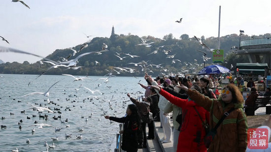 “紅嘴鷗體內(nèi)的營(yíng)養(yǎng)來(lái)源主要靠攝取蛋白質(zhì),所以魚(yú)蝦是最佳食品,希望市民不要帶面包或饅頭喂食。”越王樓三江半島景區(qū)工作人員唐婷坦言,景區(qū)屬于全開(kāi)放領(lǐng)域,不時(shí)有游商小販?zhǔn)圪u(mài)面包等,目前只有加大志愿者巡邏及宣講,號(hào)召市民觀賞紅嘴鷗時(shí)要保持距離,尊重紅嘴鷗生活習(xí)性,文明觀鷗。