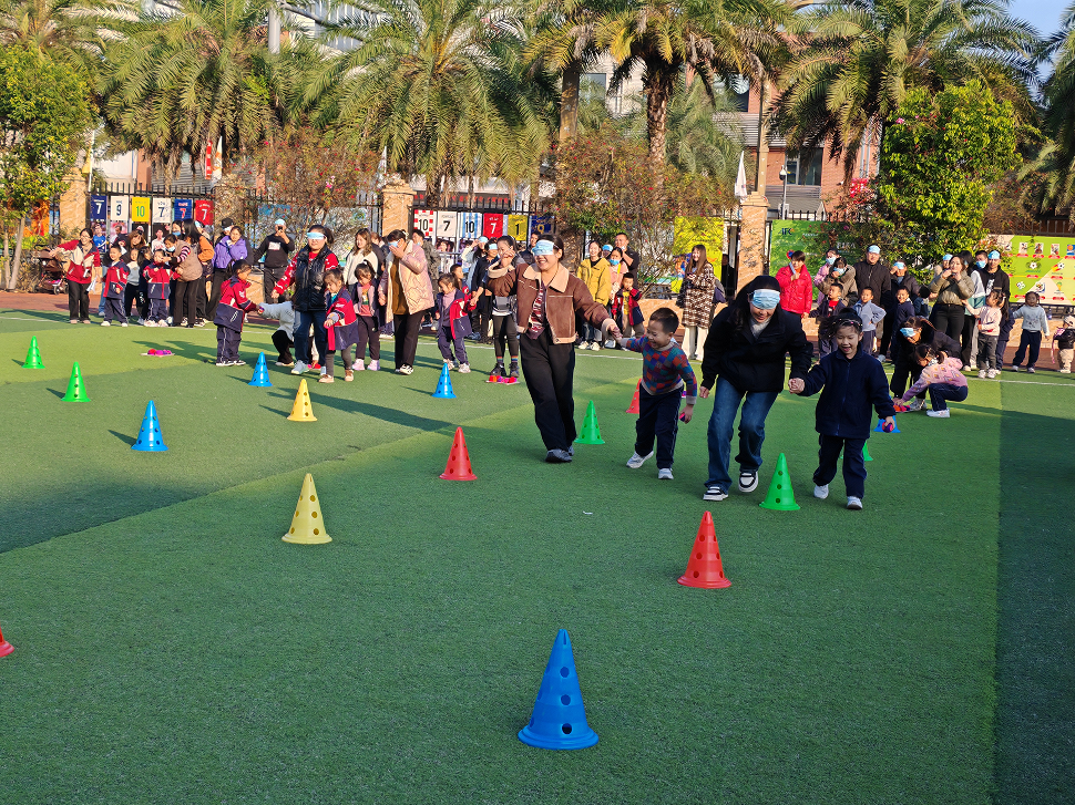 運動會環(huán)節(jié),老師們結(jié)合各年齡段孩子的特點及發(fā)展規(guī)律,分年齡段設(shè)置了內(nèi)容豐富、形式多樣的運動比賽項目,涵蓋了走、跑、跳、投、鉆、爬等多種動作技能的鍛煉。每個運動項目都趣味橫生,精彩紛呈。運動場上處處激蕩著孩子們奔跑的腳步聲,激烈的歡呼聲,銀鈴般的笑聲。家長和孩子們通力配合,攜手前進,匯聚成冬日里最美麗的風(fēng)景。家長在孩子的歡呼助威下團結(jié)協(xié)作,揮灑汗水,用熱血點燃賽場,他們的拼搏與堅持,為孩子傳遞著榜樣的力量。孩子們在體驗運動帶來的快樂時,也享受著童年特有的幸福陪伴。一張張稚嫩的小臉寫滿陽光、健康,成為了運動會中最亮麗的風(fēng)景線。伴著激烈的歡呼聲,大朋友小朋友們將激情奔涌的運動會推向了一個又一個高潮。