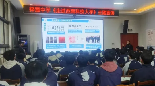 朱玉穎從學(xué)校的歷史沿革、辦學(xué)特色、學(xué)科優(yōu)勢(shì)等方面,向師生們?nèi)娼榻B了西南科技大學(xué)。她的宣講不僅激發(fā)了學(xué)生們對(duì)大學(xué)的向往,更為他們未來(lái)的學(xué)業(yè)規(guī)劃提供了寶貴的參考。