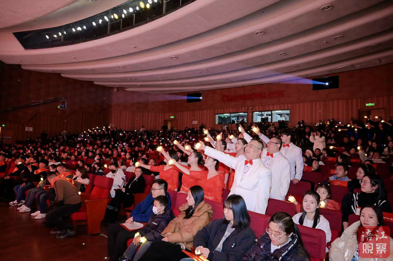 當(dāng)天19點(diǎn)30分,記者在音樂會現(xiàn)場看到,紅色的燈光照映著劇場,現(xiàn)場座無虛席。隨著一曲熱情昂揚(yáng)的《追著幸福飛》,音樂會的帷幕正式拉開,也奏響了新春的序曲。