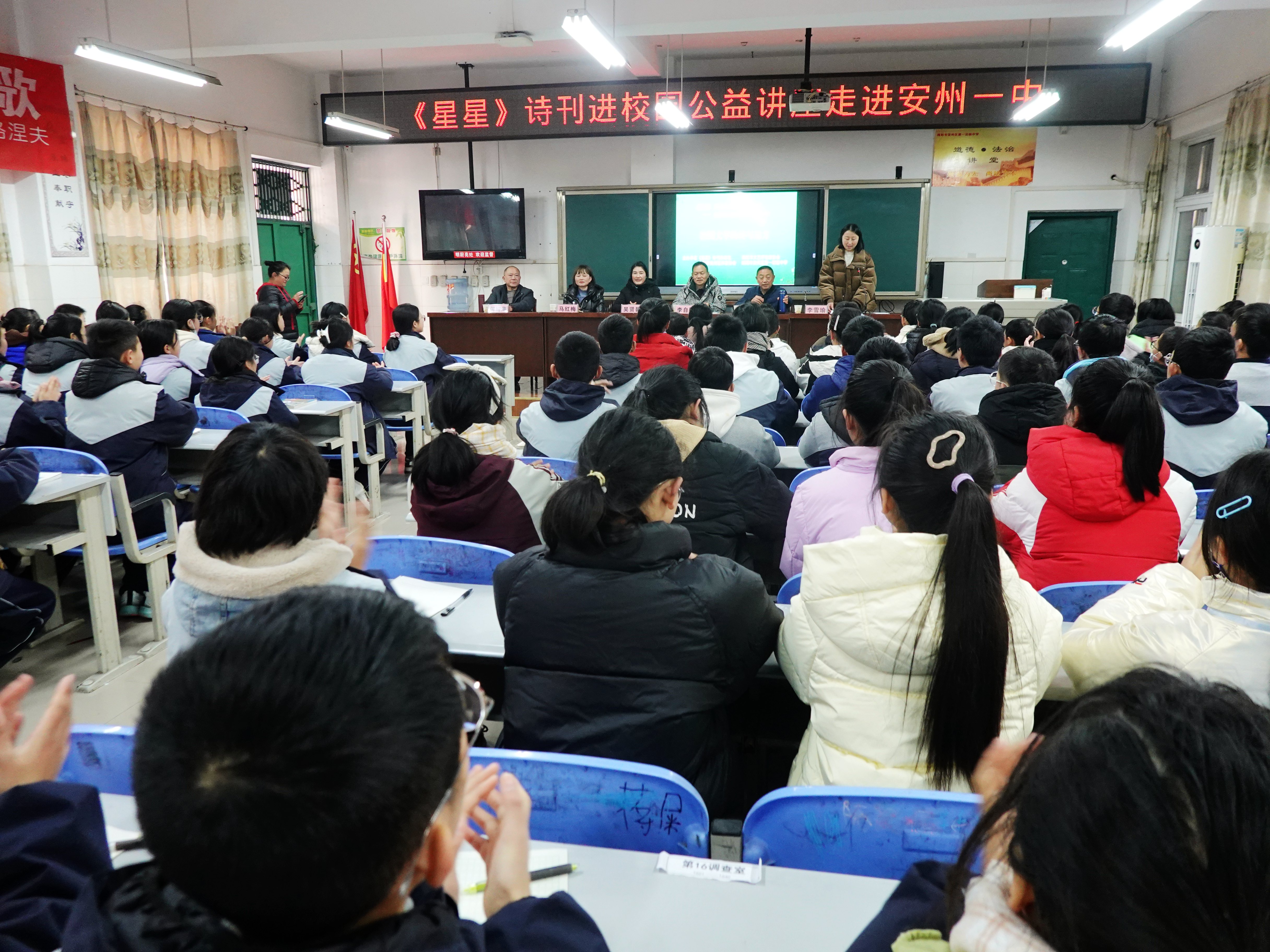 12月26日上午,安州區(qū)第一初級(jí)中學(xué)成功舉辦了以“ 棲詩(shī)于‘星’筆繪夢(mèng)想”為主題的2024年秋“校園文學(xué)詩(shī)與遠(yuǎn)方”專(zhuān)題公益講座。