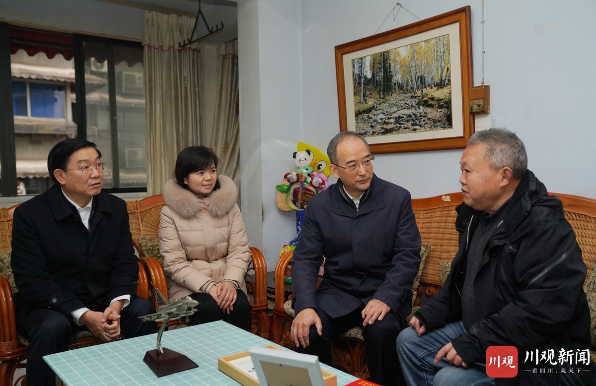 2月6日,省委副書記、省長黃強(qiáng)在成都市錦江區(qū)書院街街道五昭路社區(qū)軍烈屬陳德友家中看望慰問。