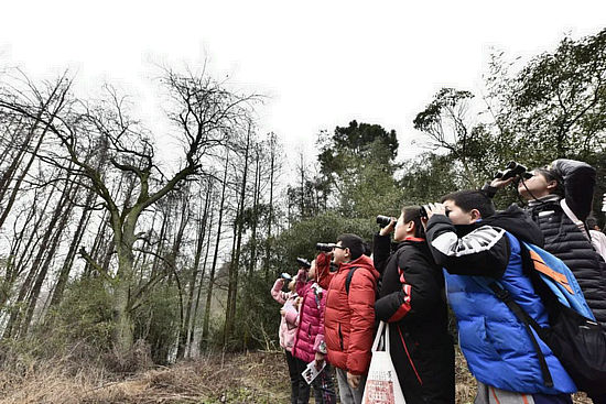 小學(xué)生在開(kāi)展觀鳥(niǎo)活動(dòng)
