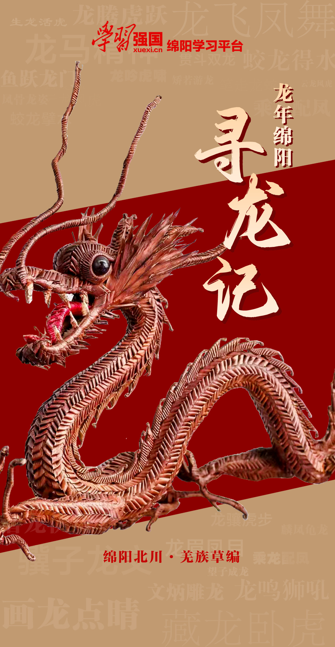 這些草編龍形態(tài)各異,有的騰空而行,有的靜臥昂首,還有的悠然漫步。這些作品,都是由省級非遺項目北川羌族草編代表性傳承人黃強和他的團隊制作的。所有的草編龍,都以棕葉等為原材料,綜合運用編、扎、剪、粘等手法編制而成。傳統(tǒng)的北川草編制作技藝和材料的巧妙運用,讓龍身具有特別的質感和立體視效。
