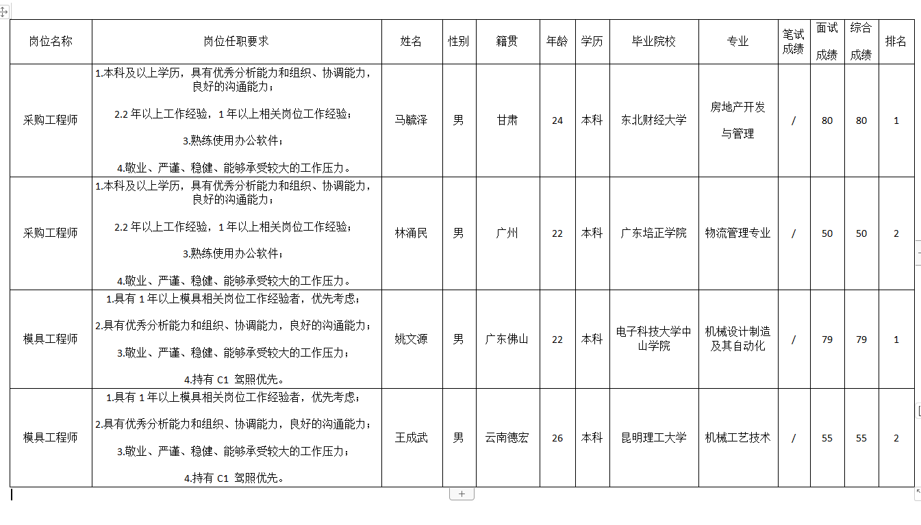 根據(jù)廣東長(zhǎng)虹電子有限公司發(fā)布的招聘公告及招聘相關(guān)規(guī)定,經(jīng)面試等程序,現(xiàn)將面試成績(jī)予以公示。