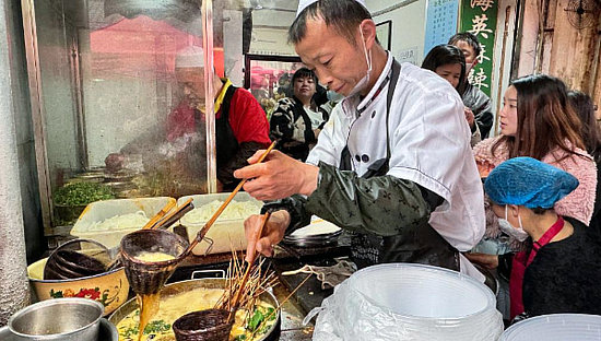清晨6點(diǎn)多,天水市秦州區(qū)文廟旁的小院里已經(jīng)排起長隊(duì)。當(dāng)紅“打卡點(diǎn)”海英麻辣燙店內(nèi),10多位店員切菜、串菜忙個(gè)不停。“現(xiàn)在每天接待700多人,夜宵成正餐了。”老板娘哈海英啞著嗓子說。