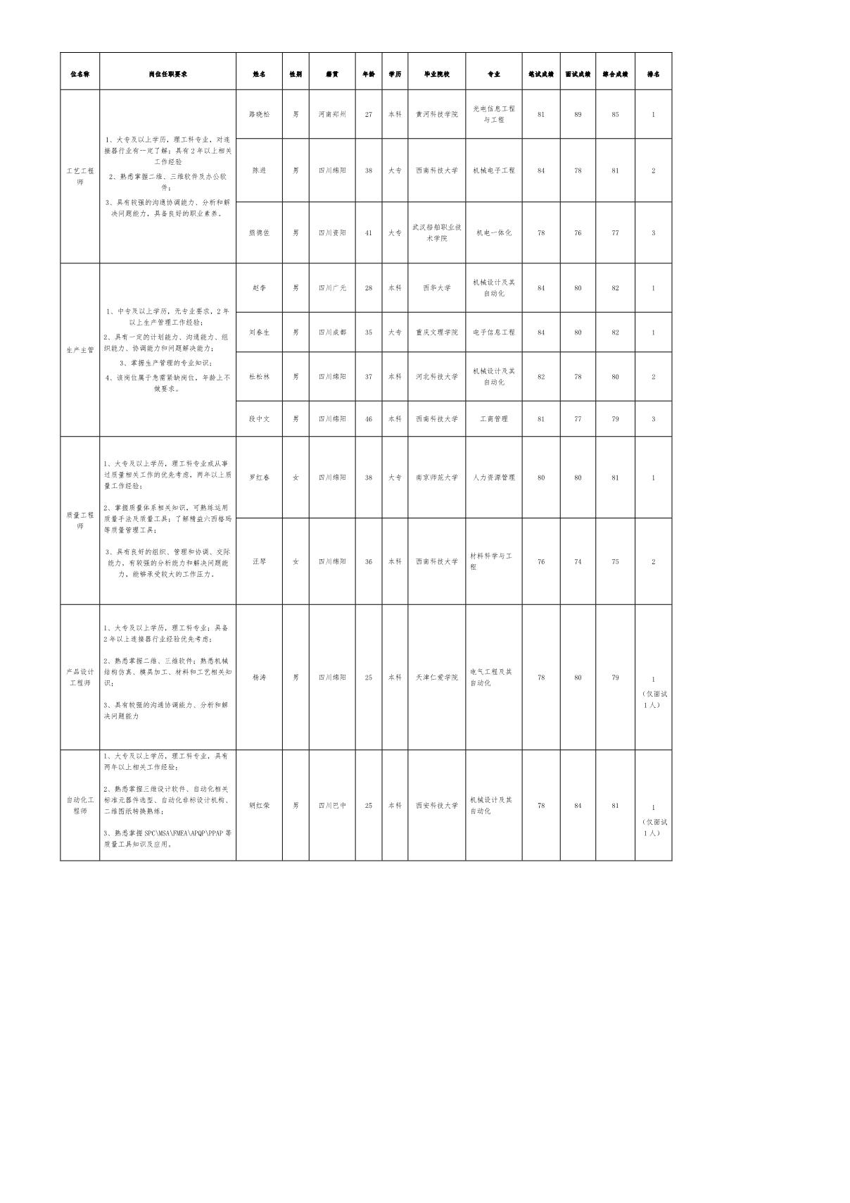 根據(jù)四川華豐科技股份有限公司發(fā)布的招聘公告及招聘相關(guān)規(guī)定,經(jīng)筆試、面試等程序,現(xiàn)將筆試(面試)成績予以公示。