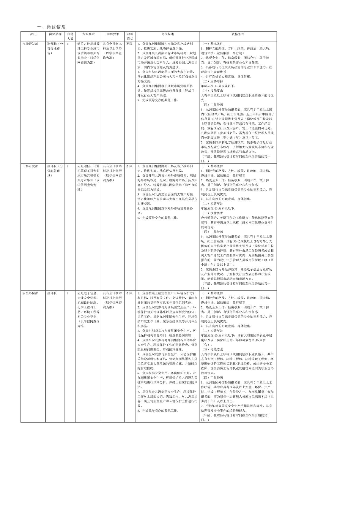 ?。ㄒ唬刚邞趫竺麜r間內(nèi)將《四川九州投資控股集團有限公司社會化選聘中層管理人員報名表》(詳見附件)及其他應提供的報名資料,以圖片或PDF文件格式打包壓縮后請用“報名職位名稱+本人姓名”命名,發(fā)送至指定郵箱15196261795@163.com,聯(lián)系人張女士(組織人事部),聯(lián)系電話:0816-2468312。 其他應提供的報名資料包括:本人身份證、學歷學位證書(含學信網(wǎng)證明)、專業(yè)技術資格證書、職(執(zhí))業(yè)資格證書、工作經(jīng)歷證明(任職文件、勞動合同等)、近年來主要工作業(yè)績(成果)、獲獎證書等相關材料。(二)凡有下列情形之一的,不得報名1.因犯罪受過刑事處罰的。2.被開除中國共產(chǎn)黨黨籍的。3.被開除公職的。4.被依法列為失信聯(lián)合懲戒對象的。5.受到誡勉、組織處理或者黨紀政務處分等影響期未滿或者期滿影響使用的。6.涉嫌違紀違法正在接受有關機關審查尚未作出結(jié)論的。7.正在接受審計機關審計的。8.法律法規(guī)規(guī)定的其他情形。