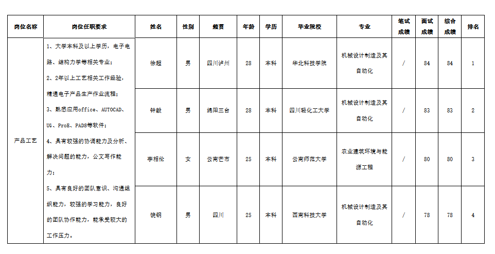 根據(jù)四川長(zhǎng)虹電器股份有限公司(智慧顯示)發(fā)布的招聘公告及招聘相關(guān)規(guī)定,經(jīng)筆試、面試等程序,現(xiàn)將筆試(面試)成績(jī)予以公示。