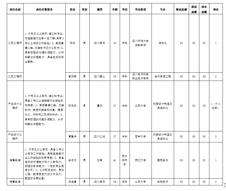 根據(jù)四川華豐科技股份有限公司發(fā)布的招聘公告及招聘相關(guān)規(guī)定,經(jīng)筆試、面試等程序,現(xiàn)將筆試(面試)成績(jī)予以公示。