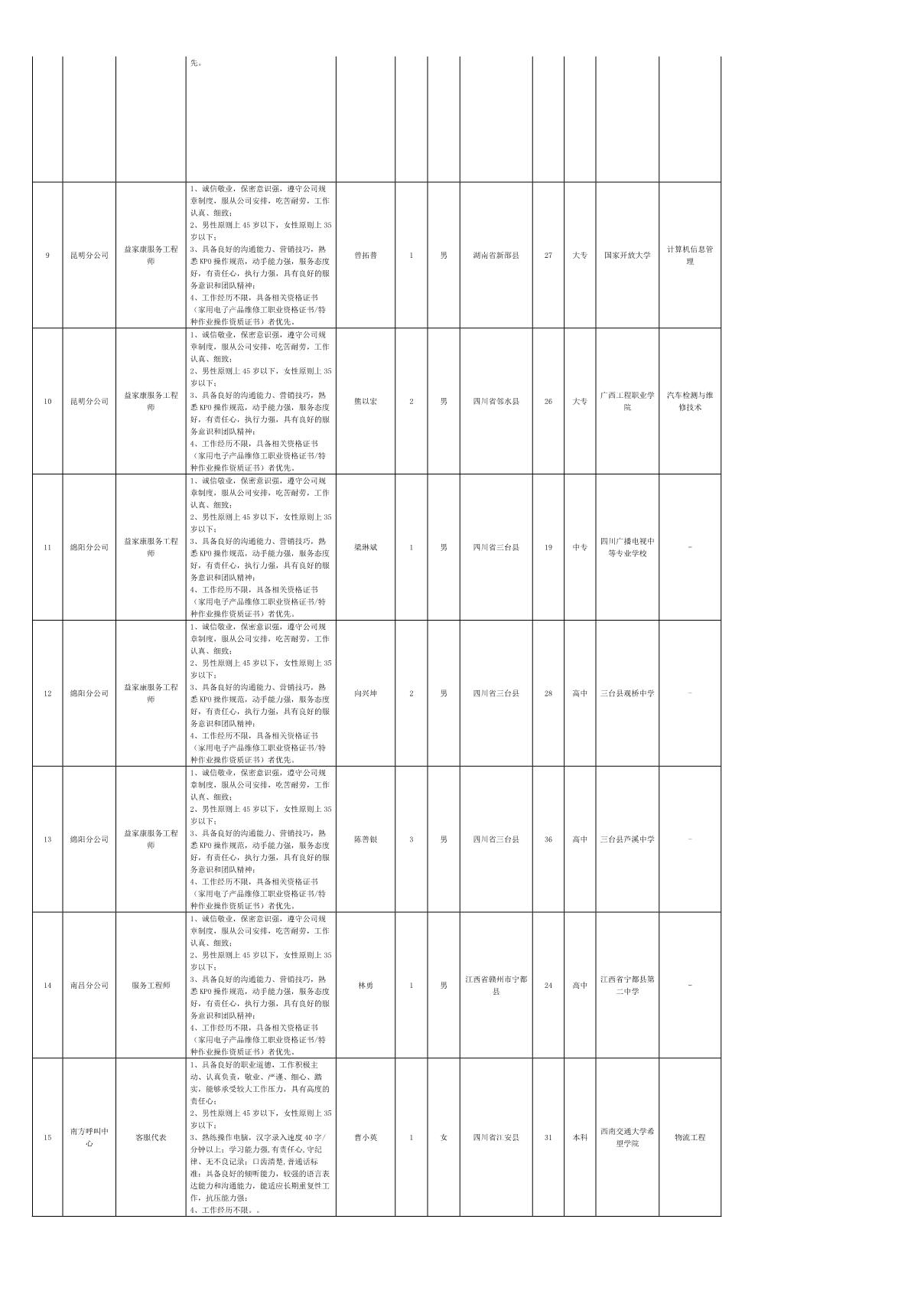 根據(jù)四川快益點電器服務連鎖有限公司發(fā)布的招聘公告及招聘相關規(guī)定,經(jīng)面試、體檢等程序,擬錄用以下同志到四川快益點電器服務連鎖有限公司工作,現(xiàn)予以公示,具體情況如下: