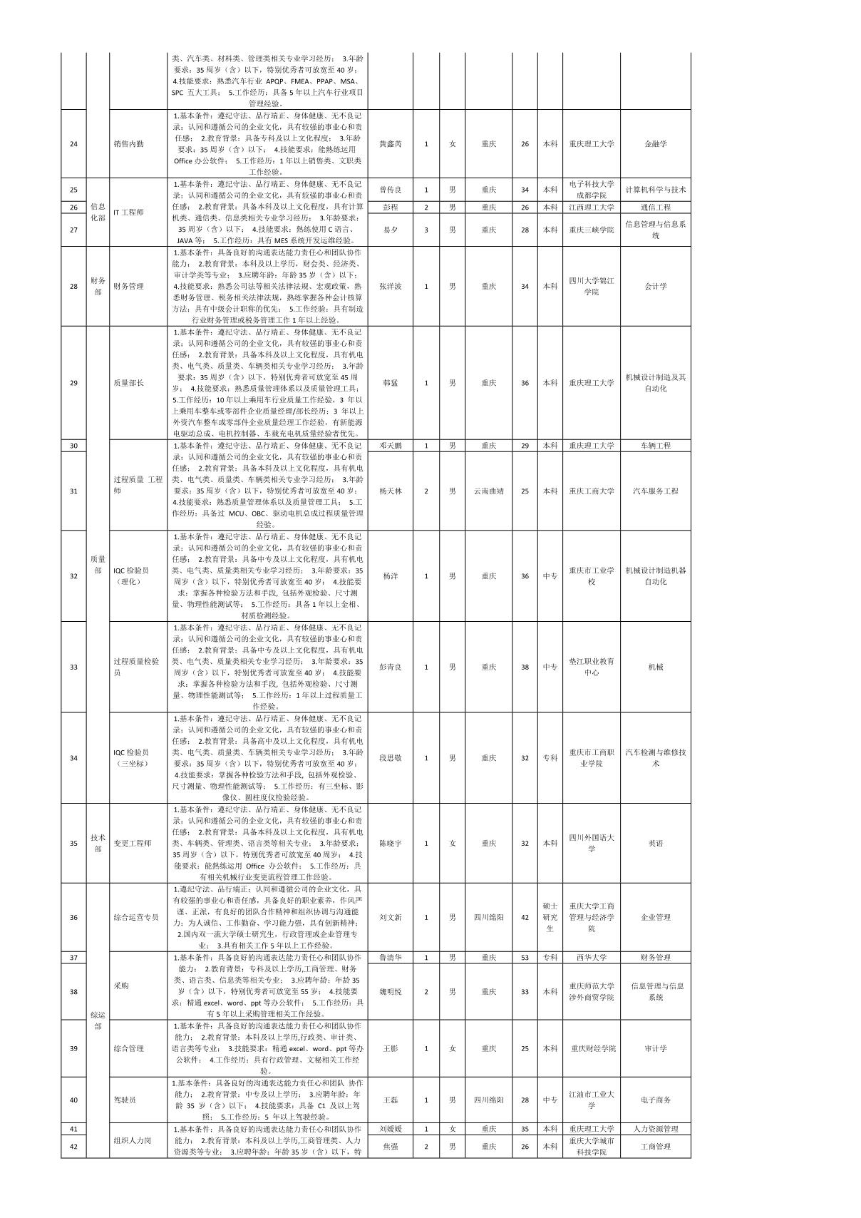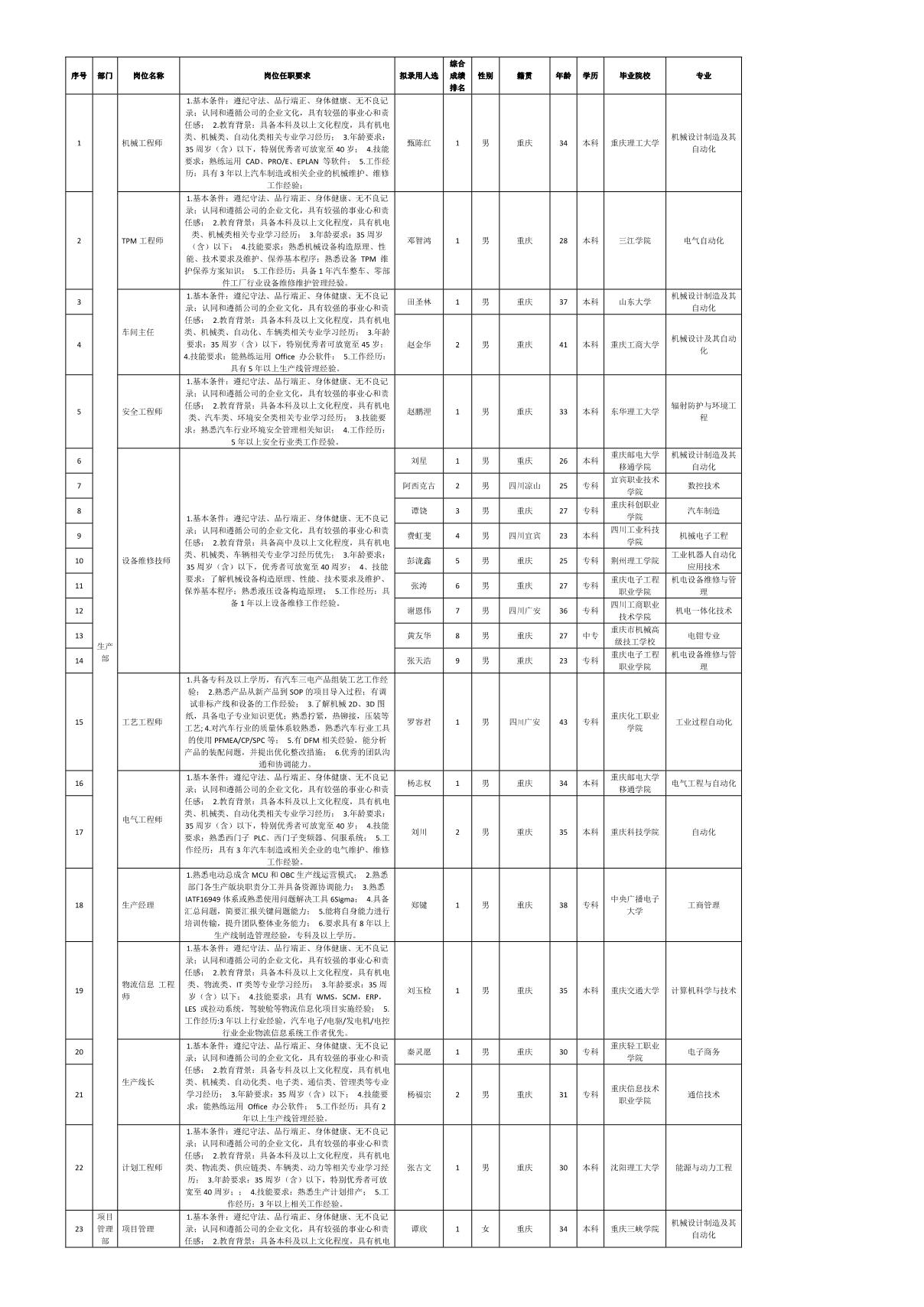 根據(jù)重慶九州智造科技有限公司發(fā)布的招聘公告及招聘相關(guān)規(guī)定,經(jīng)筆試、面試、考察、體檢等程序,擬錄用曾傳良等同志到重慶九州智造科技有限公司工作,現(xiàn)予以公示,具體情況如下: