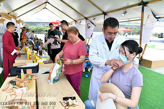 醫(yī)生在綿陽中醫(yī)藥文化長廊里現(xiàn)場調(diào)理