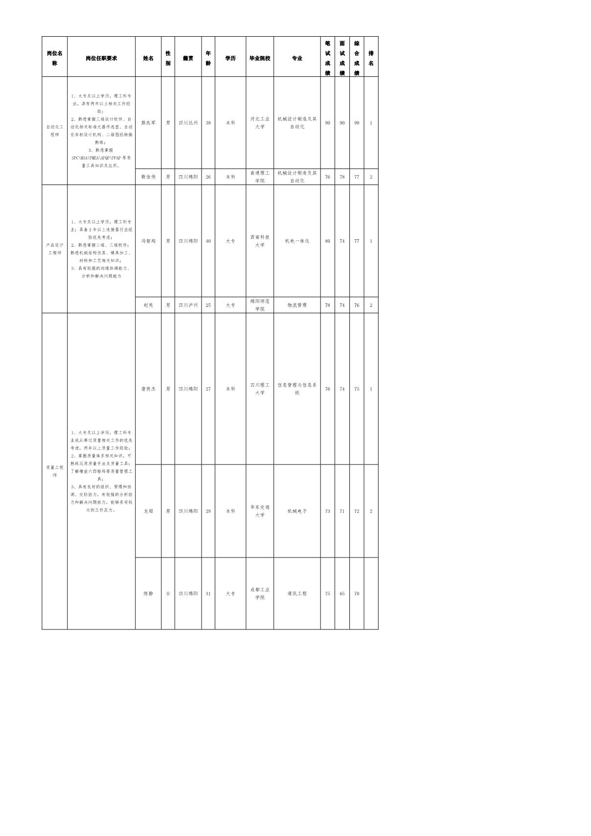 根據(jù)四川華豐科技股份有限公司發(fā)布的招聘公告及招聘相關(guān)規(guī)定,經(jīng)筆試、面試等程序,現(xiàn)將筆試(面試)成績予以公示。