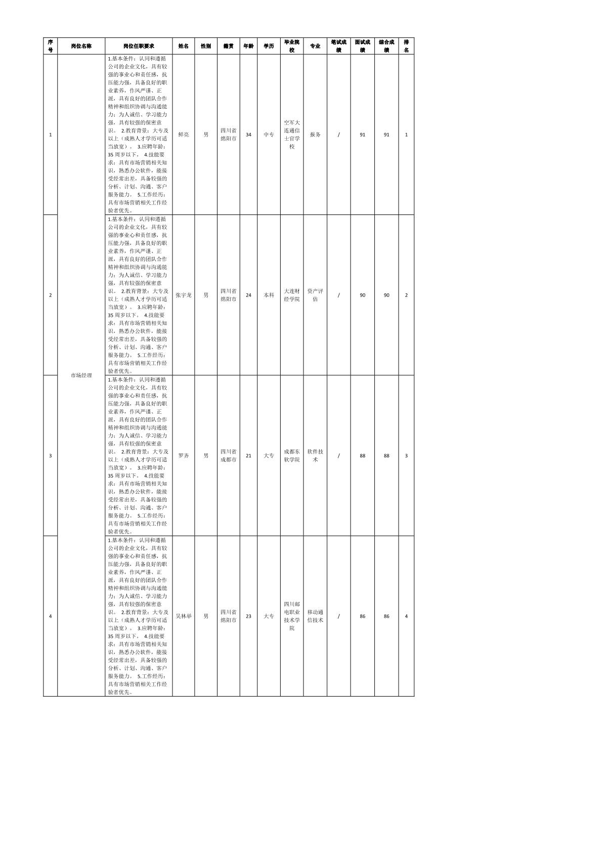 根據(jù)四川九州線纜有限責(zé)任公司發(fā)布的招聘公告及招聘相關(guān)規(guī)定,經(jīng)筆試、面試等程序,現(xiàn)將筆試(面試)成績予以公示。