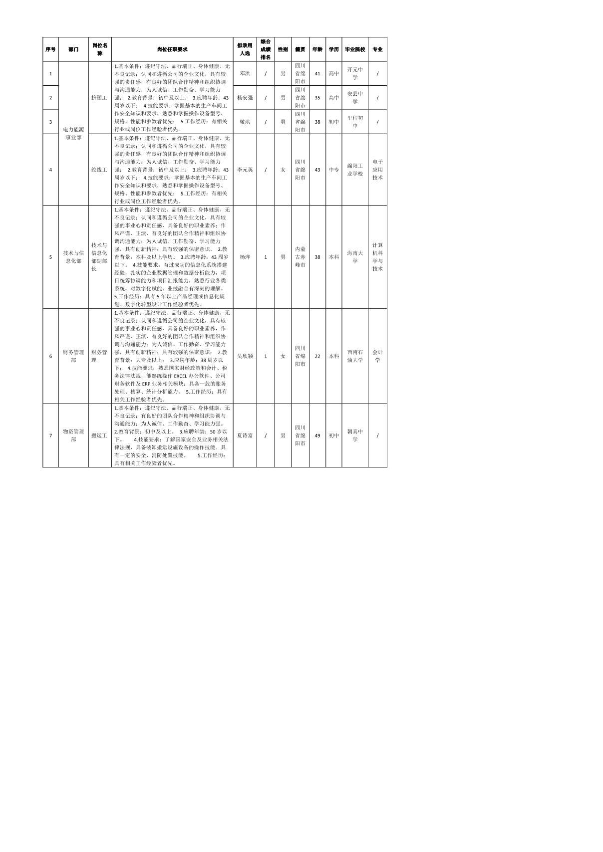 根據(jù)四川九州電子科技股份有限公司發(fā)布的招聘公告及招聘相關規(guī)定,經(jīng)筆試、面試、考察、體檢等程序,擬錄用何洋洋,劉漢翠,張渝東同志到四川九州電子科技股份有限公司工作,現(xiàn)予以公示,具體情況如下: