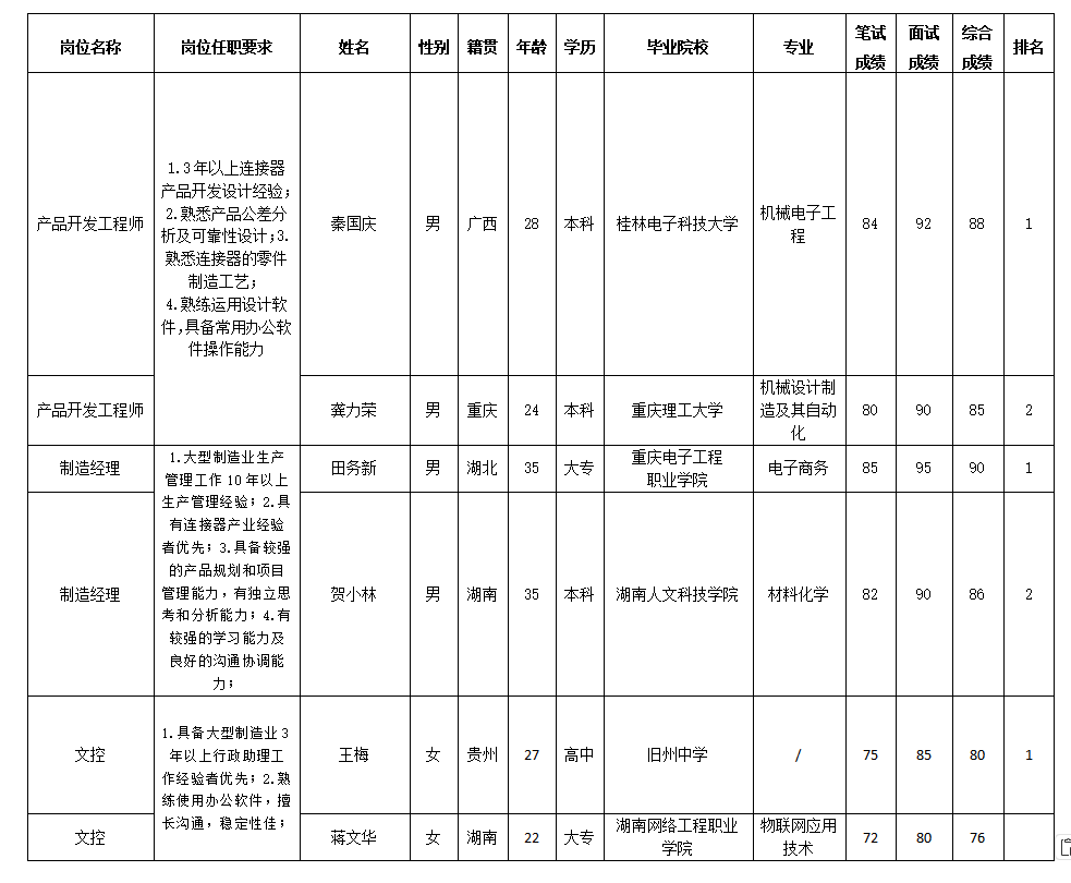 根據(jù)四川華芯鼎泰精密電子有限公司發(fā)布的招聘公告及招聘相關(guān)規(guī)定,經(jīng)筆試、面試等程序,現(xiàn)將筆試(面試)成績予以公示。