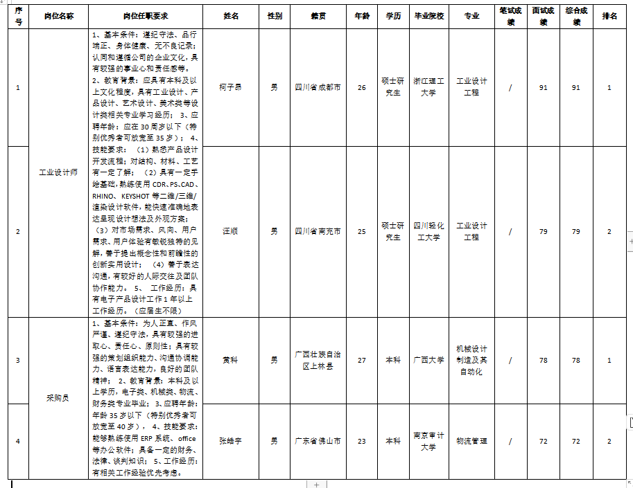 根據(jù)四川湖山電器股份有限公司發(fā)布的招聘公告及招聘相關(guān)規(guī)定,經(jīng)筆試、面試等程序,現(xiàn)將筆試(面試)成績予以公示。