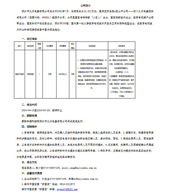 深圳市九洲電器有限公司關(guān)于招聘項(xiàng)目助理的公告