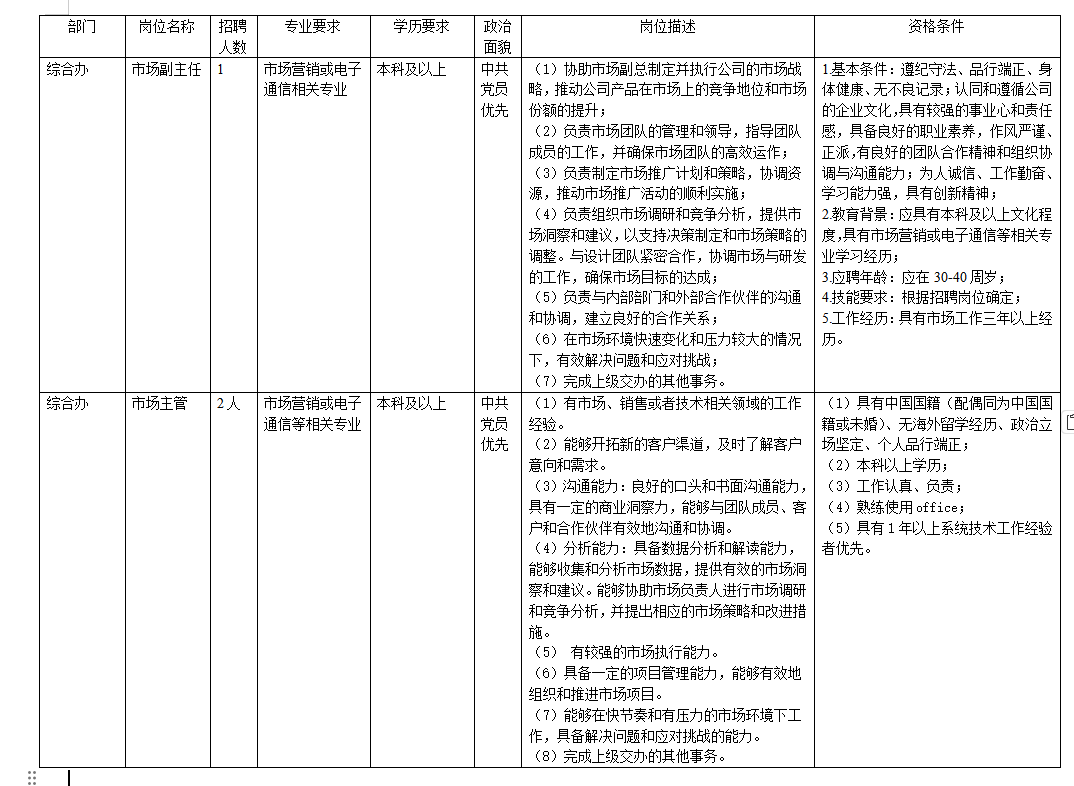 1.資格審查。按照?qǐng)?bào)名條件,對(duì)應(yīng)聘人員進(jìn)行篩選和資料審查,確定入選考試的人員名單。2.招聘方式。根據(jù)資格審查和初步甄選的情況,及時(shí)以郵件、短信或電話方式通知全部合格應(yīng)聘人員,參加筆、面試事項(xiàng),做到通知事宜和發(fā)送情況有據(jù)可查。3.確定擬錄用人員。面試結(jié)束后,以電話方式和郵件方式通知擬錄用人員,未定為擬錄用人員不再另行通知。4.正式聘用。擬聘用人員須按招聘公開渠道公示,在公示期滿無異議后。以電話和郵件方式通知辦理正式聘用手續(xù)。5.特別聲明:應(yīng)聘者應(yīng)對(duì)提交材料的真實(shí)性負(fù)責(zé),如有弄虛作假,立即取消聘用資格并追究其法律責(zé)任。
