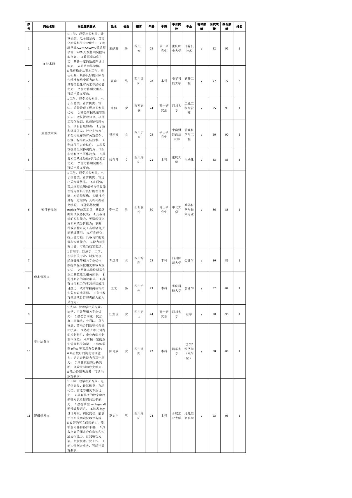 根據(jù)四川九州空管科技有限責(zé)任公司發(fā)布的招聘公告及招聘相關(guān)規(guī)定,經(jīng)筆試、面試等程序,現(xiàn)將筆試(面試)成績(jī)予以公示。
