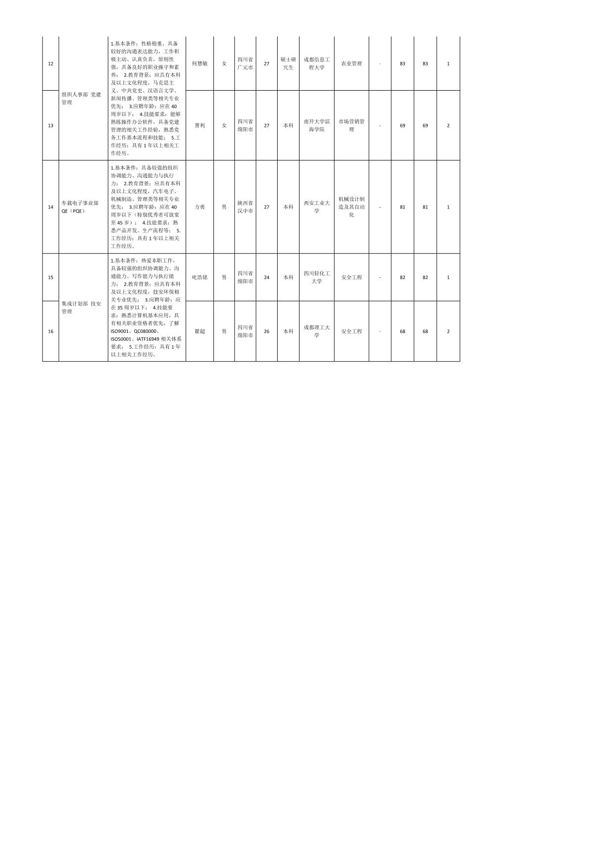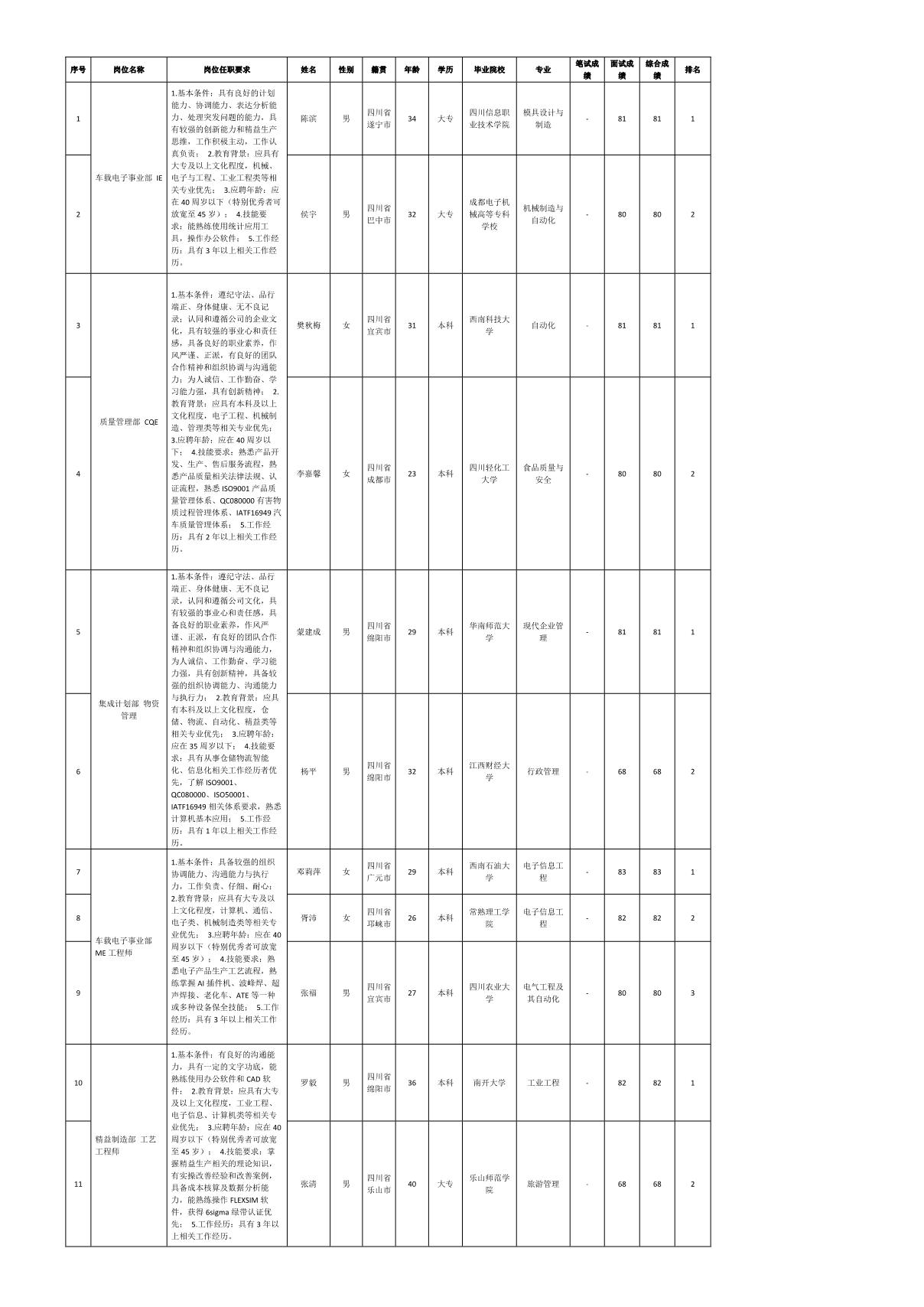根據(jù)四川九州電子科技股份有限公司發(fā)布的招聘公告及招聘相關規(guī)定,經(jīng)筆試、面試等程序,現(xiàn)將筆試(面試)成績予以公示。