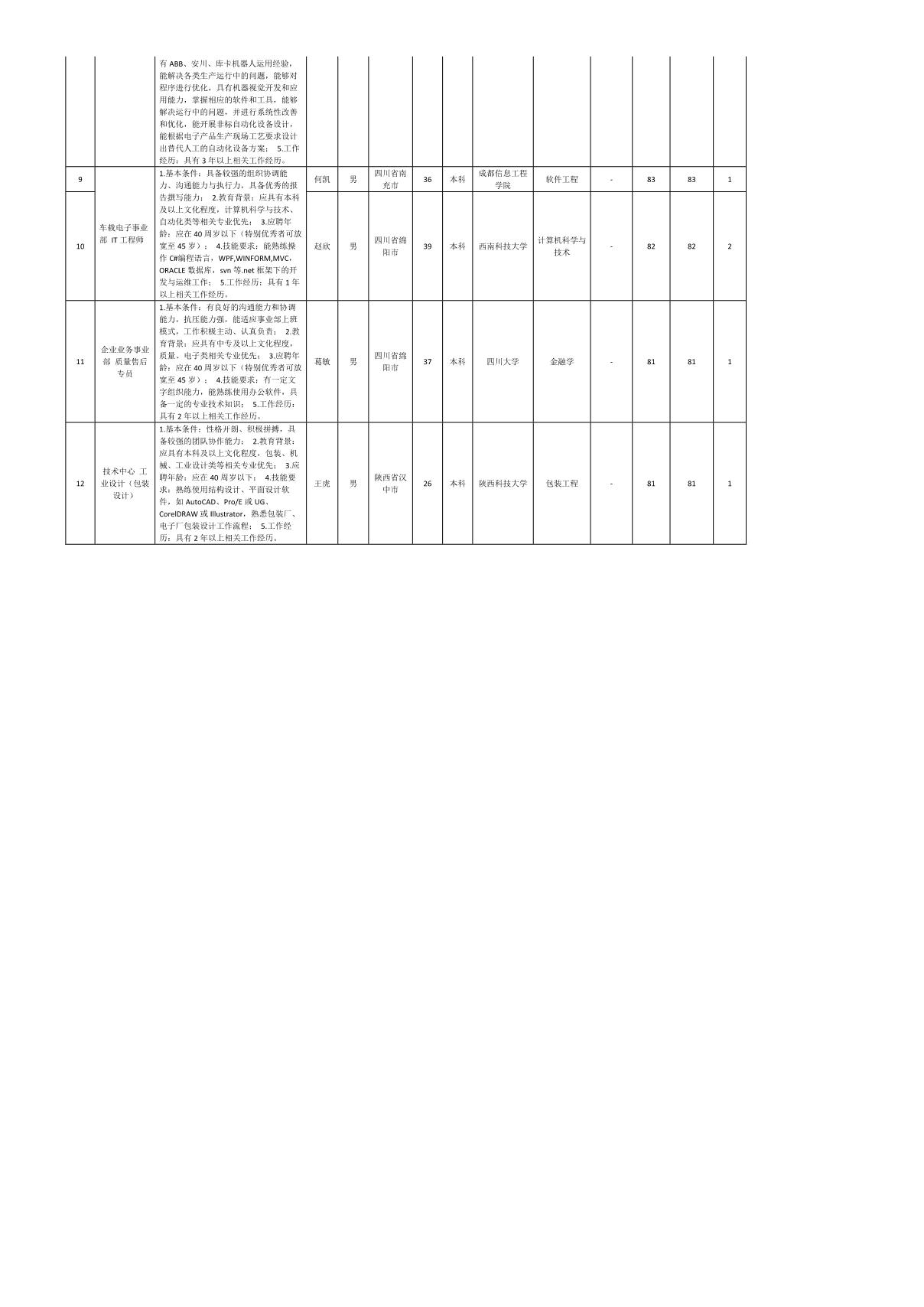 根據(jù)四川九州電子科技股份有限公司發(fā)布的招聘公告及招聘相關(guān)規(guī)定,經(jīng)筆試、面試等程序,現(xiàn)將筆試(面試)成績予以公示。